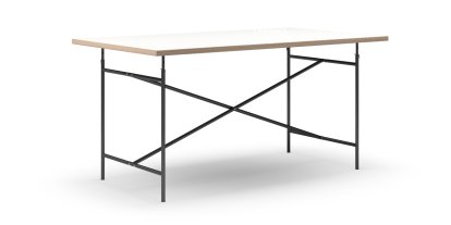 Eiermann Table White melamine with oak edge|160 x 90 cm|Black|Vertical,  centred (Eiermann 2)|135 x 66 cm