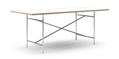 Eiermann Table White melamine with oak edge|200 x 90 cm|Chrome|Vertical,  centred (Eiermann 2)|135 x 66 cm