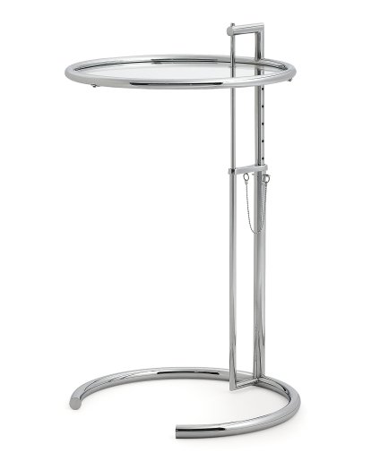 Clear and minimalist in glass and tubular steel, Eileen Gray's Adjustable Table E.1027