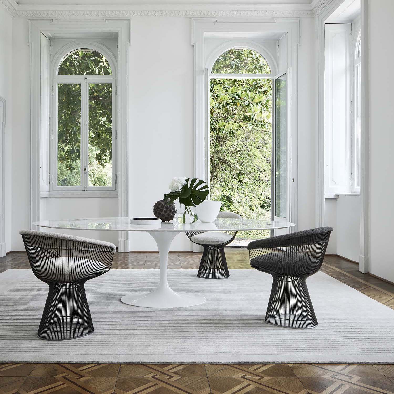 Platner Armchair by Warren Platner: The Platner chair is also produced by Knoll International and, in combination with the Saarinen dining tables, creates a breathtaking mix of materials and a particularly sophisticated look.