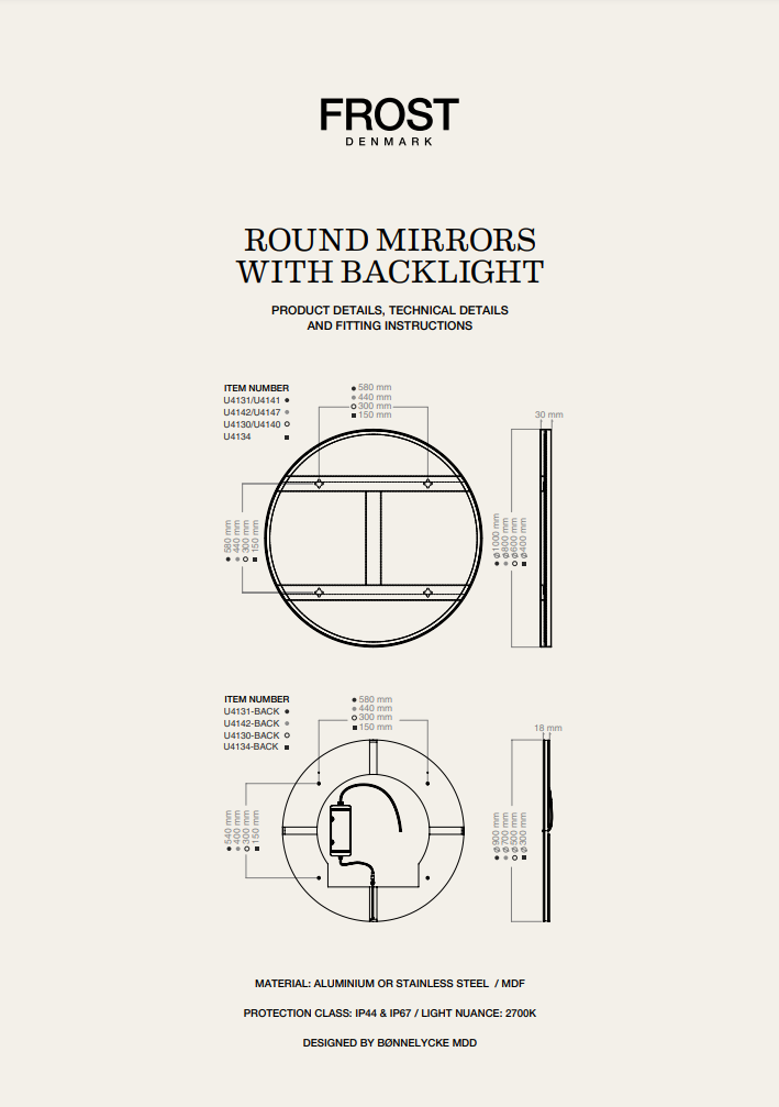 | Accessories | All round uand oval Unu mirrors can be extended with the LED plate. Please be sure to note our compatibility information |