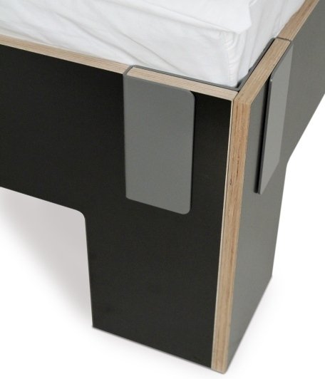 Tagedieb Bed, 180 x 200 cm, With headboard, FU (plywood, birch) black, Anthracite, Without slatted base