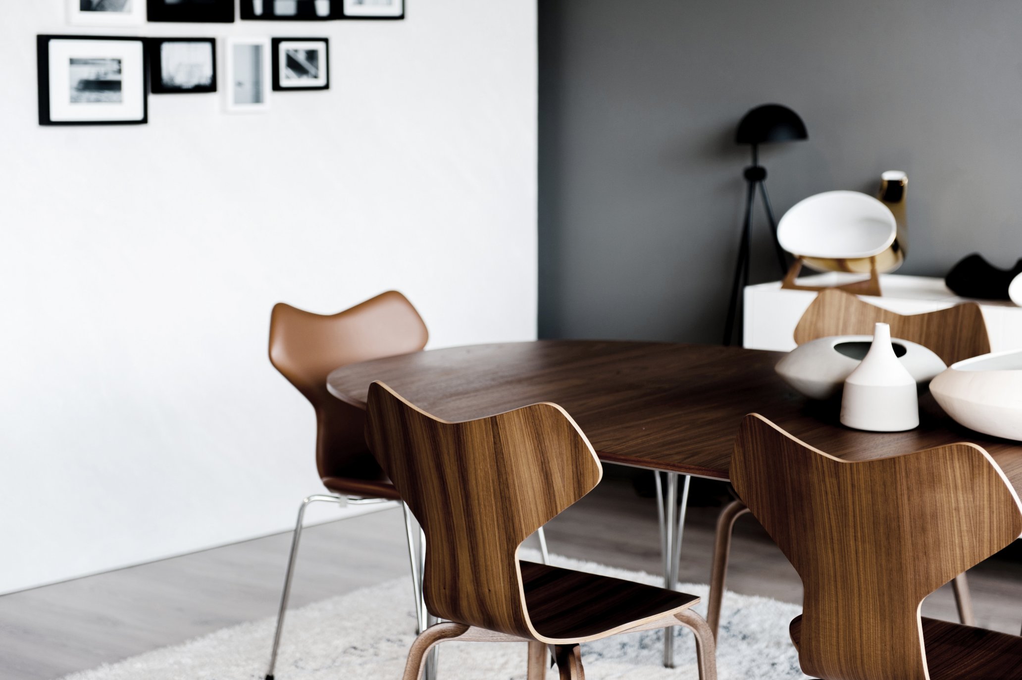Arne Jacobsen's Grand Prix stands in a tradition with his other chair designs, all of which are made of laminated and moulded sliced veneer. The chair, which was launched in 1957, won the highest award at the Milan Triennale in the same year: the Grand Prix.
