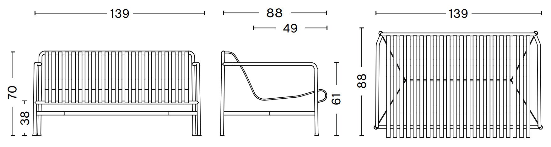 The Palissade garden furniture collection from Hay also includes the Palissade Lounge Sofa by Ronan & Erwan Bouroullec: an object which offers a lot of space, yet which on account of its minimalist design never looks too bulky. Together with the other Palissade outdoor furniture the Hay sofa creates a coherent overall picture.