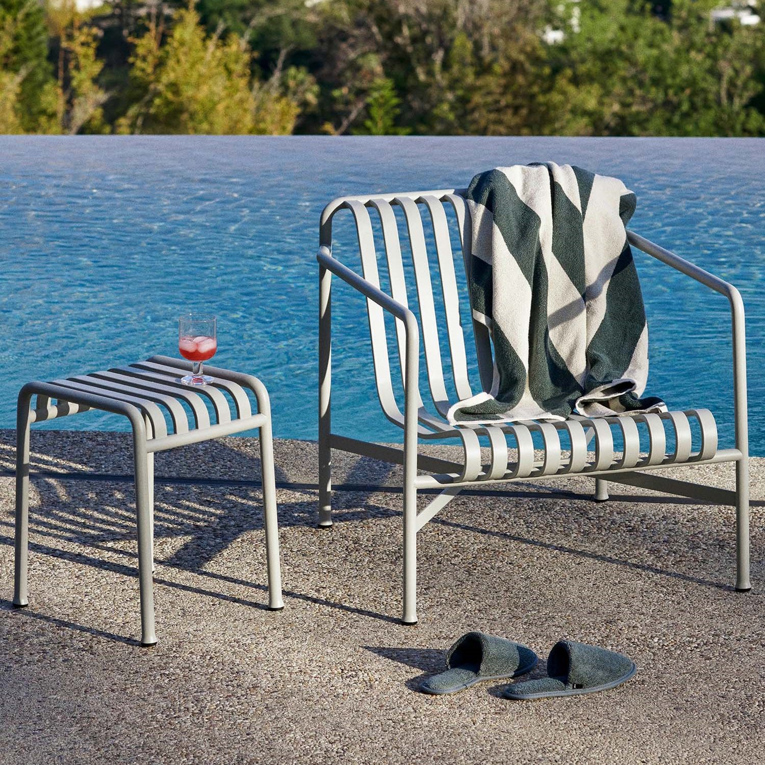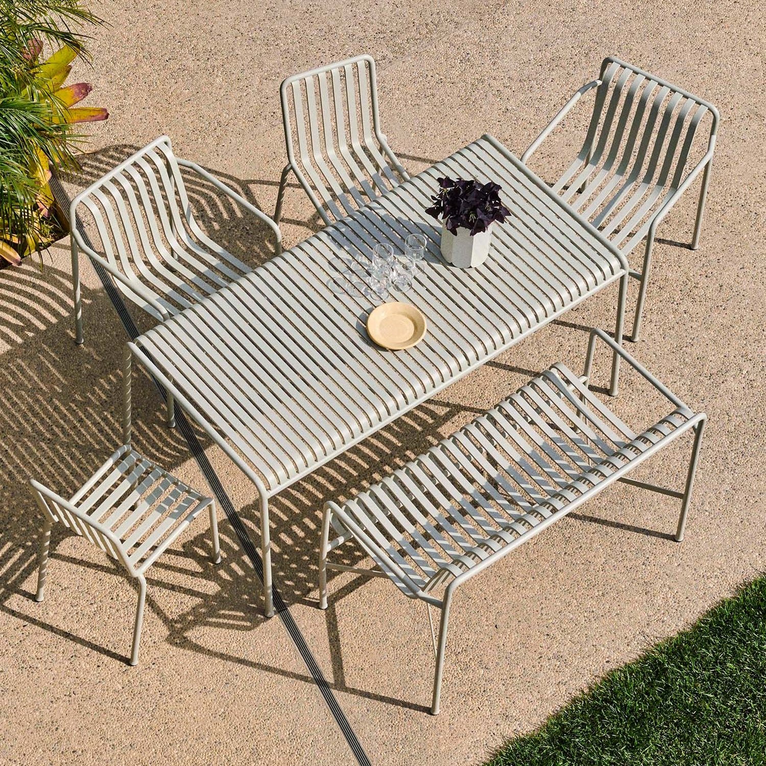 Palissade: The Palissade Collection is a range of powder-coated steel garden furniture designed by Ronan and Erwan Bouroullec for outdoor use. A particularly extensive collection featuring, the slim, minimalist design of the Palissade furniture is determined by the characteristic construction of steel struts and curved shapes.
