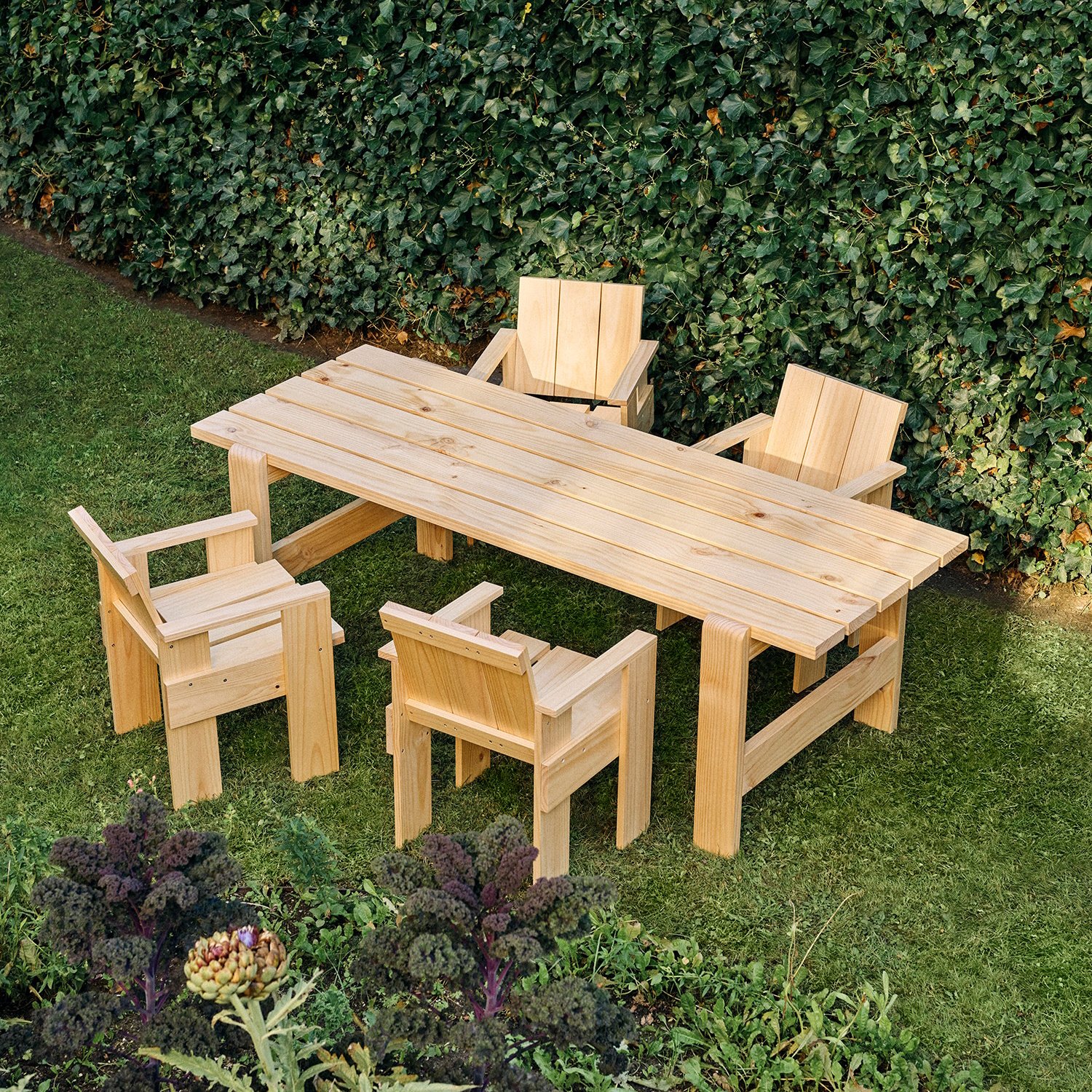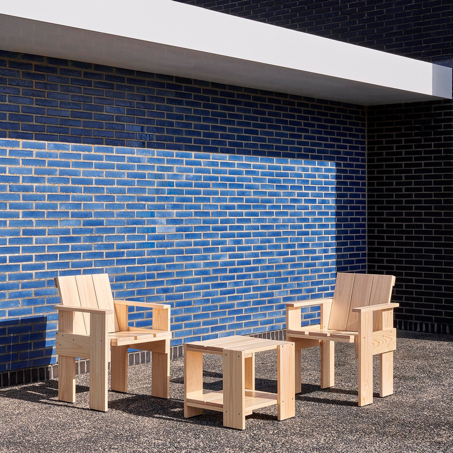 Crate: The Crate Collection through Hay includes various pieces of seating furniture and the Crate side table, all of which are made of wood and a have a modern, functionalist design. The Crate pieces of furniture are available in different colours and ensure a harmonious and modern ambience on the terrace or in the garden. The Crate collection owes its name to Gerrit Rietveld's original idea from 1934. The architect and designer designed the Crate furniture from the individual parts of wooden boxes that were no longer needed.