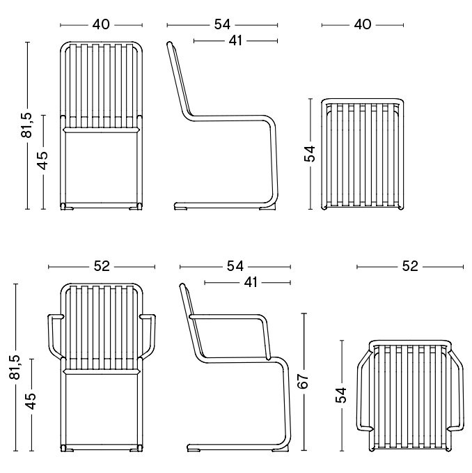 The Palissade cantilever chair by Ronan Bouroullec gives the Palissade series a dynamic lightness based on an elegantly swinging steel construction. This design enables a springy seating experience that guarantees maximum relaxation while retaining its shape. The model fits seamlessly into the geometric aesthetic of the collection and is available with or without armrests. High-quality materials ensure weatherproof durability, bringing Scandinavian design to the garden or patio for the long term.