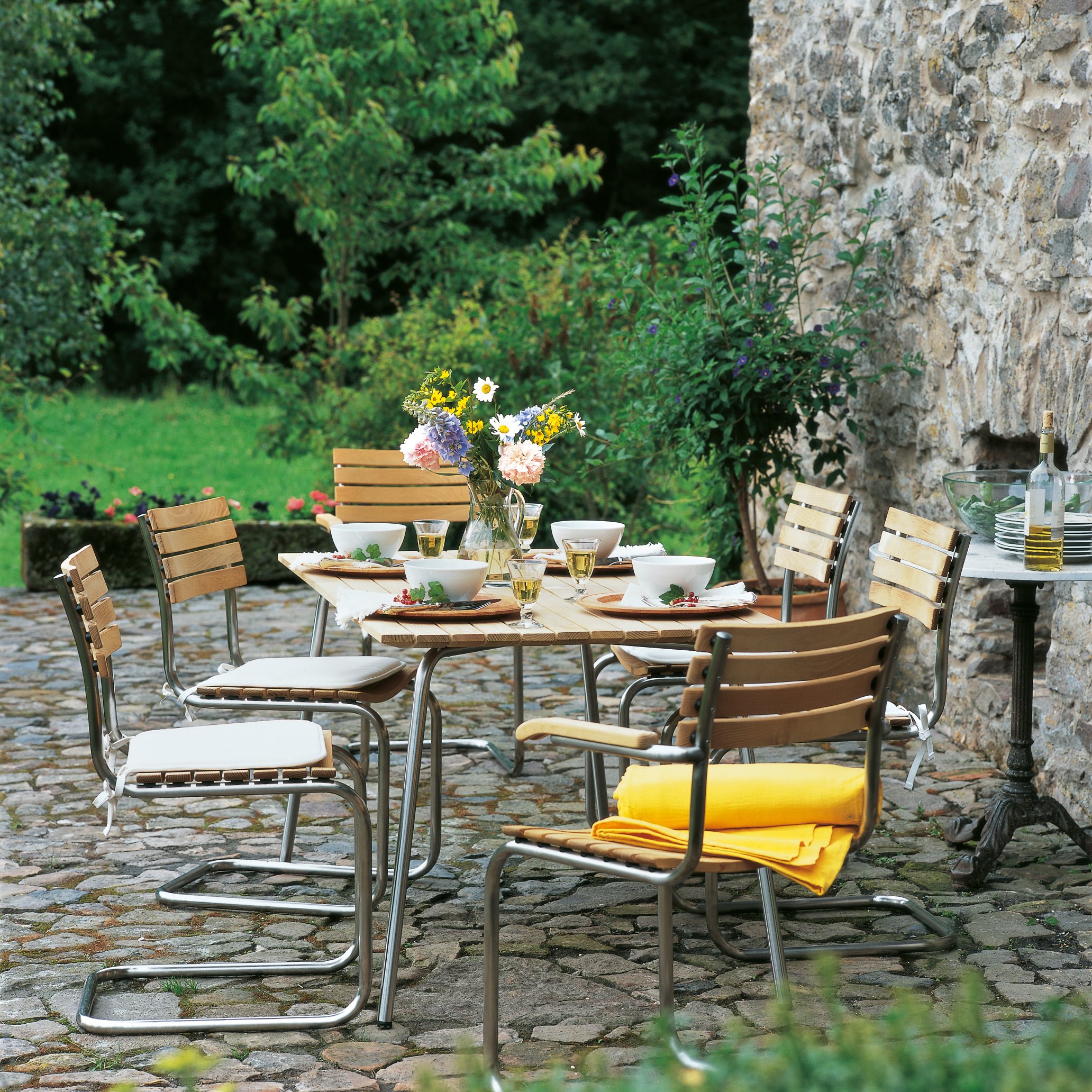 The furniture designer Marcel Breuer began his studies at Bauhaus in 1920 and acquired his Master title at the time of Bauhaus's move from Weimar to Dessau in 1925. From the very beginning Breuer was regarded as a pioneer in the innovative use of materials, for all wood and metal. In his text "Metal Furniture and Modern Spatiality" Breuer described the aim with his Bauhaus furniture as being to create objects which stand in space in such a way that they interfere with neither movement nor the view through the room. The famous Laccio Bauhaus tables, designed by Marcel Breuer around 1925, consist of a combination of chrome plated steel tubes and wooden surfaces, and today Knoll International still produce the Laccio Table. The Wassily steel tube armchair was also designed in 1925 and was designed for the Dessau studio apartment of his colleague Wassily Kandinsky, from whom the name for the Bauhaus classic was also derived. In 1928 Breuer added a steel tube chair following the typical Bauhaus design to his portfolio.