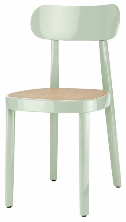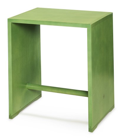 Stool E60, Seat lacquered green, Legs birch clear varnished