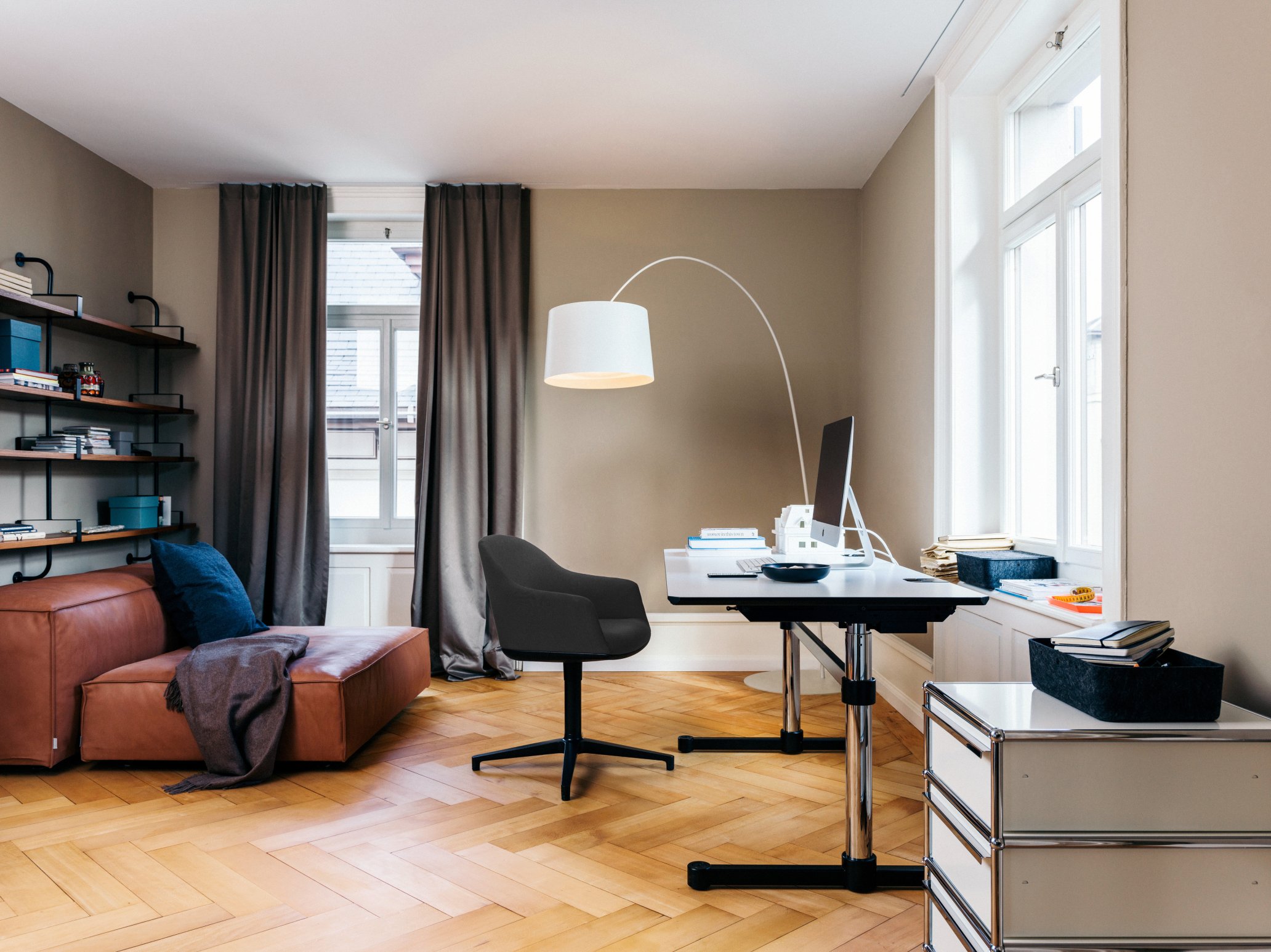 Thanks to more flexible working hours and digital networking, people are increasingly working from home. The furnishing of the home office can be much more comfortable and personal than in the office: but should always ensure the same concentration and productivity. Manufacturers such as Vitra or USM Haller specialize in high-quality design furniture for the office sector and offer numerous functional solutions that also have a pleasantly homely feel. In addition to storage space solutions, an ergonomic office chair, a sufficiently large desk and a complementing desk lamp play an important role in the home office.