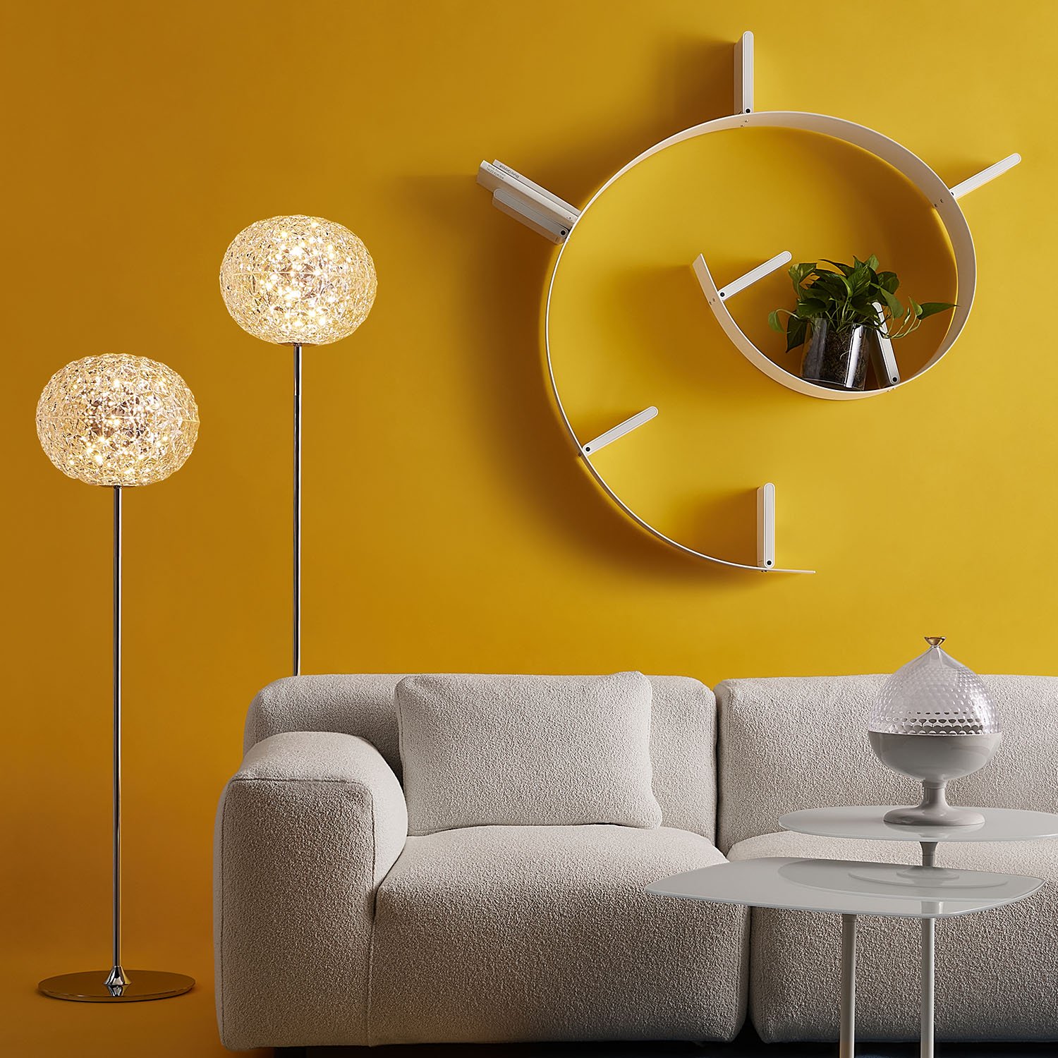 Today Kartell's product range extends to numerous seating furniture, tables, lighting, storage items, and home accessories. And while many Kartell products offer practical, stylish, and affordable furnishing solutions, others are of particular interest for discerning design lovers, including, for example, the upholstered furniture collections and shelving systems. The stylish Kartell lighting by designers such as Philippe Starck and Rodolfo Dordoni also ranges in style from minimalist to neo-baroque, offering the perfect lighting solution for diverse interior design styles and budgets.