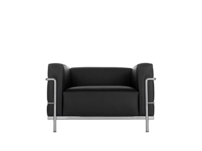 The Fauteuil Grand Confort, petit modèle (LC2) – also known as the "cushion basket" – consists of five separate cushions held by a surrounding steel frame. This separation of structure and upholstery refers to the logic of industrial production and the principles of functionalist construction.