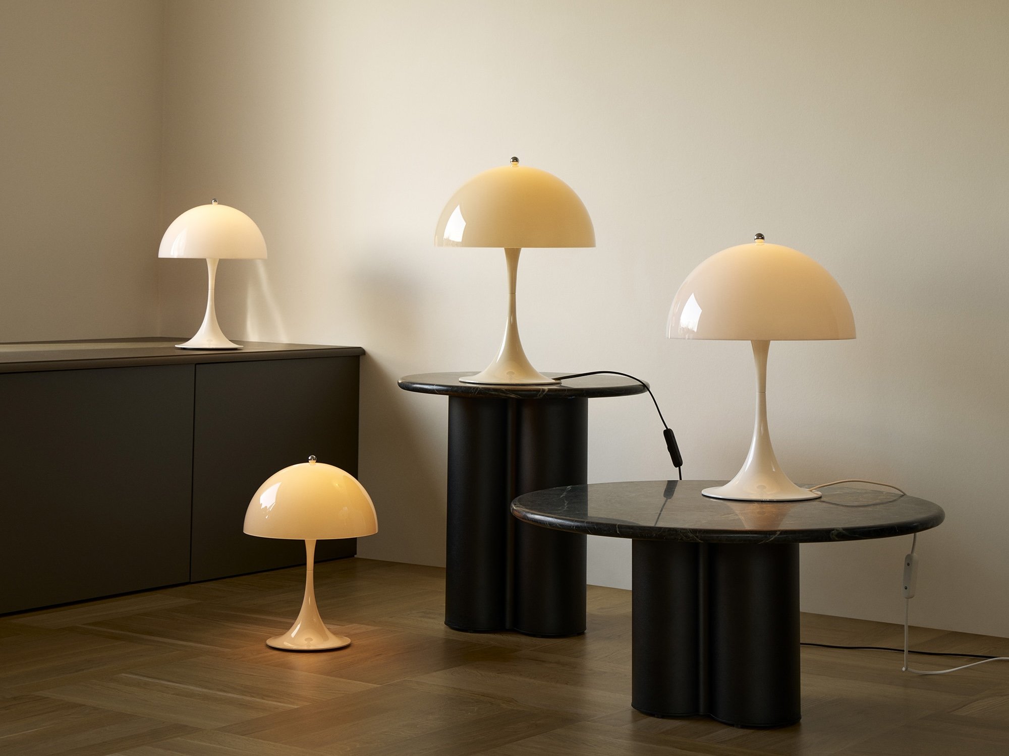 It has been complemented by changing colour palettes - from subtle natural tones to expressive accent colours such as yellow, coral or orange. The Panthella always remains contemporary without losing its iconic shape. The Panthella family therefore offers the right version for almost every room situation and every style - whether as a discreet light source on the bedside table, as an eye-catcher in the living area or as a light source on the balcony or terrace on warm summer nights.