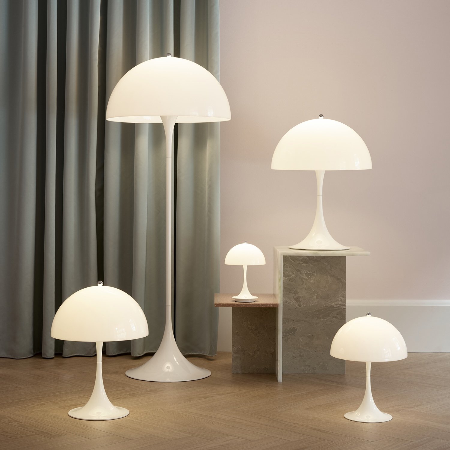 The Panthella is one of Verner Panton's most famous lighting designs and has been a classic in the Danish lighting manufacturer's range for decades Louis Poulsen. With its softly curved, organic silhouette, characteristic hemispherical shade and pleasantly diffuse light, it epitomises Scandinavian design in its most iconic form. Whether as a table lamp, floor lamp or in a modern battery-powered version - the Panthella combines atmospheric lighting with a sculptural presence and blends effortlessly into a wide variety of living environments.