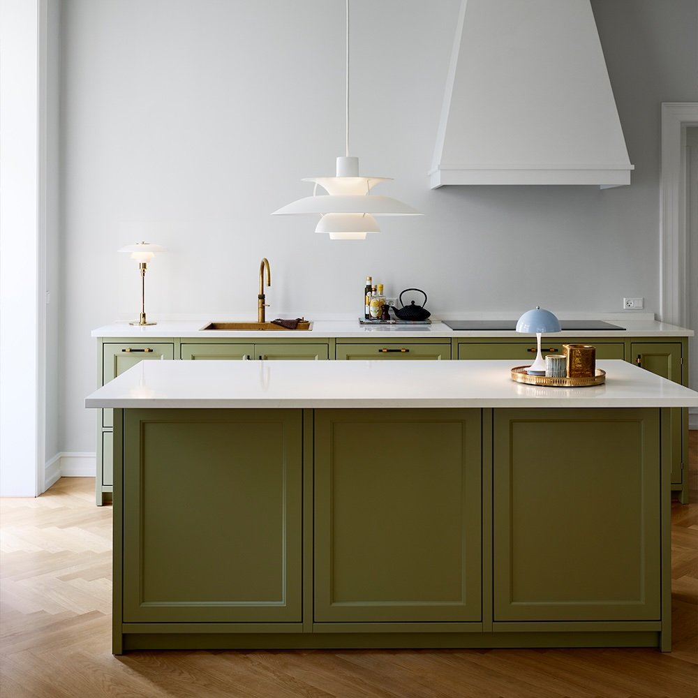 Warm wood tones, low sideboards and softly rounded furniture create the ideal setting for the Panthella luminaire. Its organic silhouette blends harmoniously between wooden surfaces, leather, textiles or stone. Placed on a sideboard, a kitchen island or a side table, it has a calm and harmonising effect and supports the typical Nordic atmosphere of light, naturalness and homely restraint.