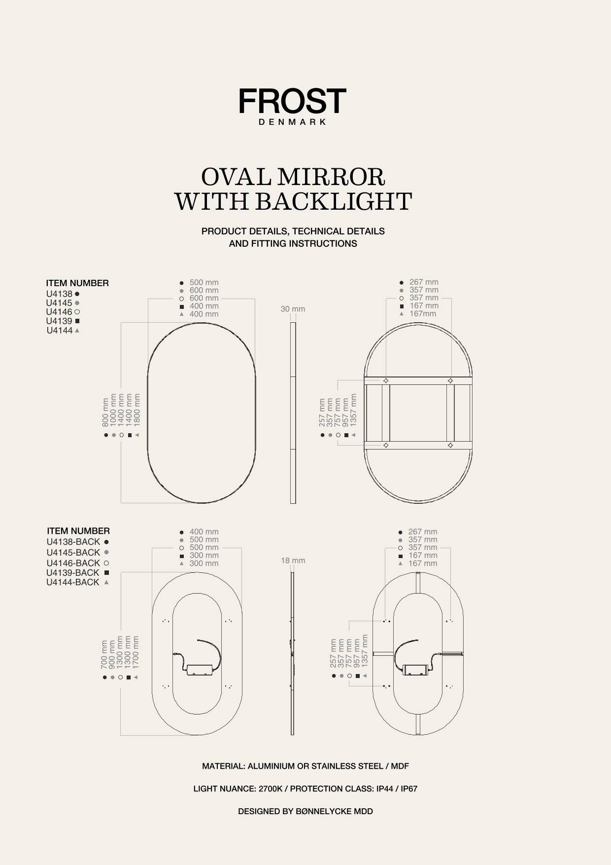 Frost Denmark Unu mirror with LED lighting oval (set)