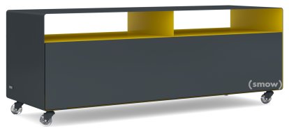 TV Lowboard R 109, Bicoloured, Anthracite grey (RAL 7016) - Traffic yellow (RAL 1023), Transparent castors