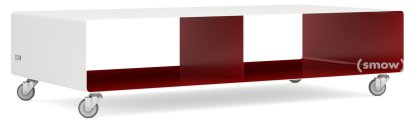 TV Lowboard R 200 Bicoloured|Pure white (RAL 9010) - Ruby red (RAL 3003)|Industrial castors