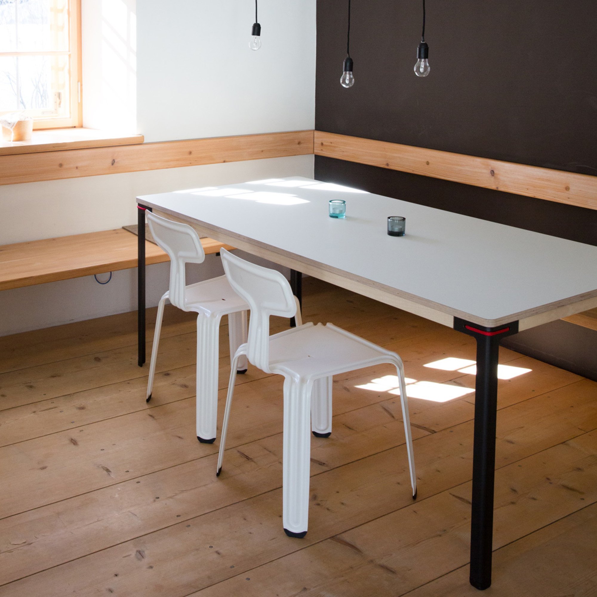 The Moormann table tops are an absolute special feature: the three surface finishes melamine resin, laminate and linoleum are resistant, are characterized by their own unique feel and are available in different colours. Although the manufacturer has a preference for black, in the case of expected heavy use - and where there is a risk of scratching - Moormann recommends however, bright surfaces.