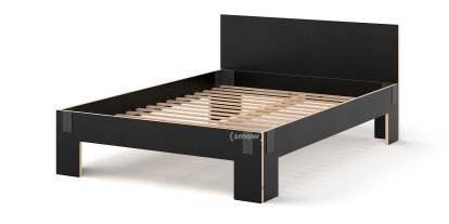 Tagedieb Bed, 160 x 200 cm, With headboard, FU (plywood, birch) black, Anthracite, With rollable slatted base