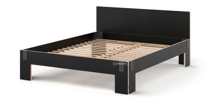 Tagedieb Bed, 180 x 200 cm, With headboard, FU (plywood, birch) black, Anthracite, With rollable slatted base