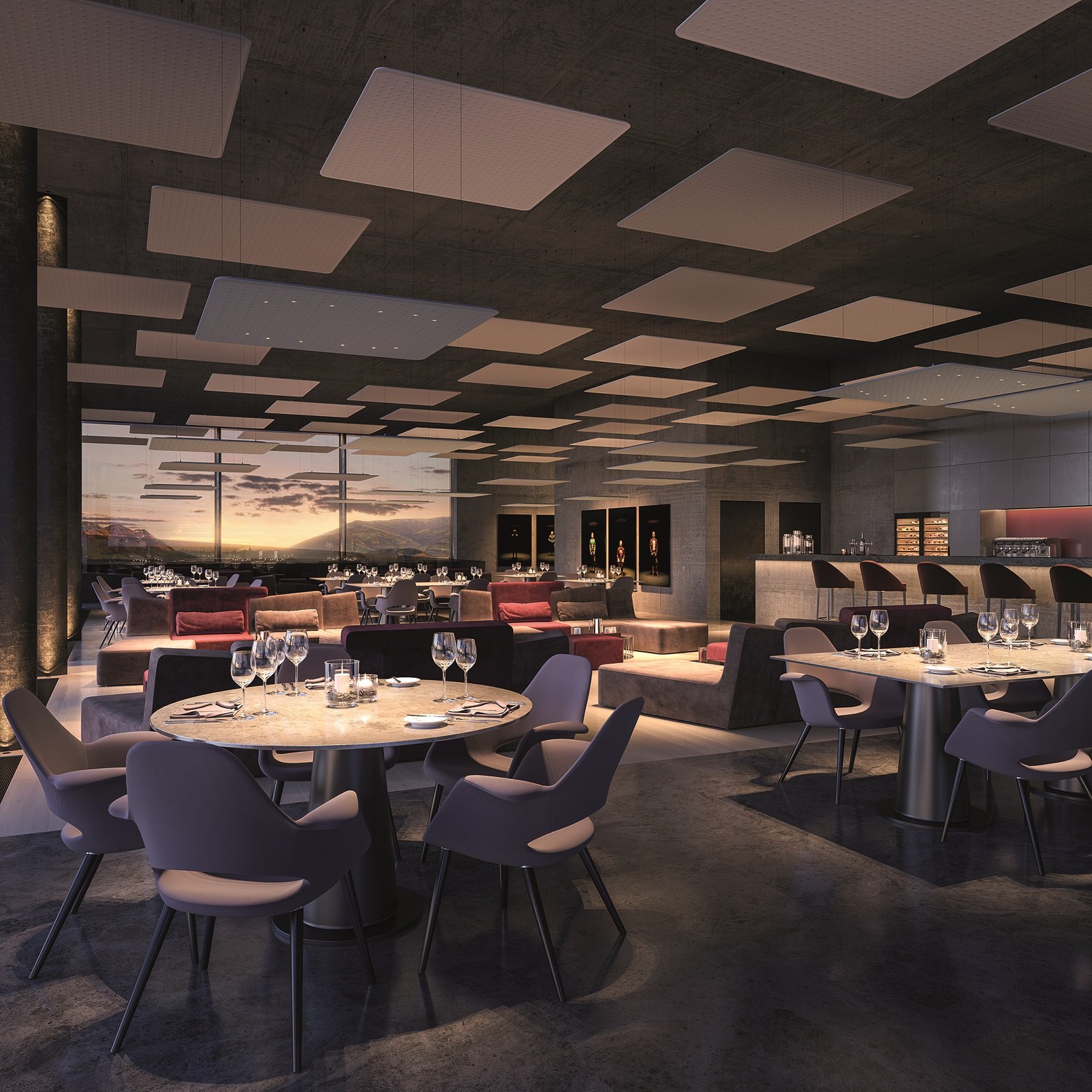 Artful Lighting Pad arrangement in a restaurant (Photo © DesignRaum GmbH)
