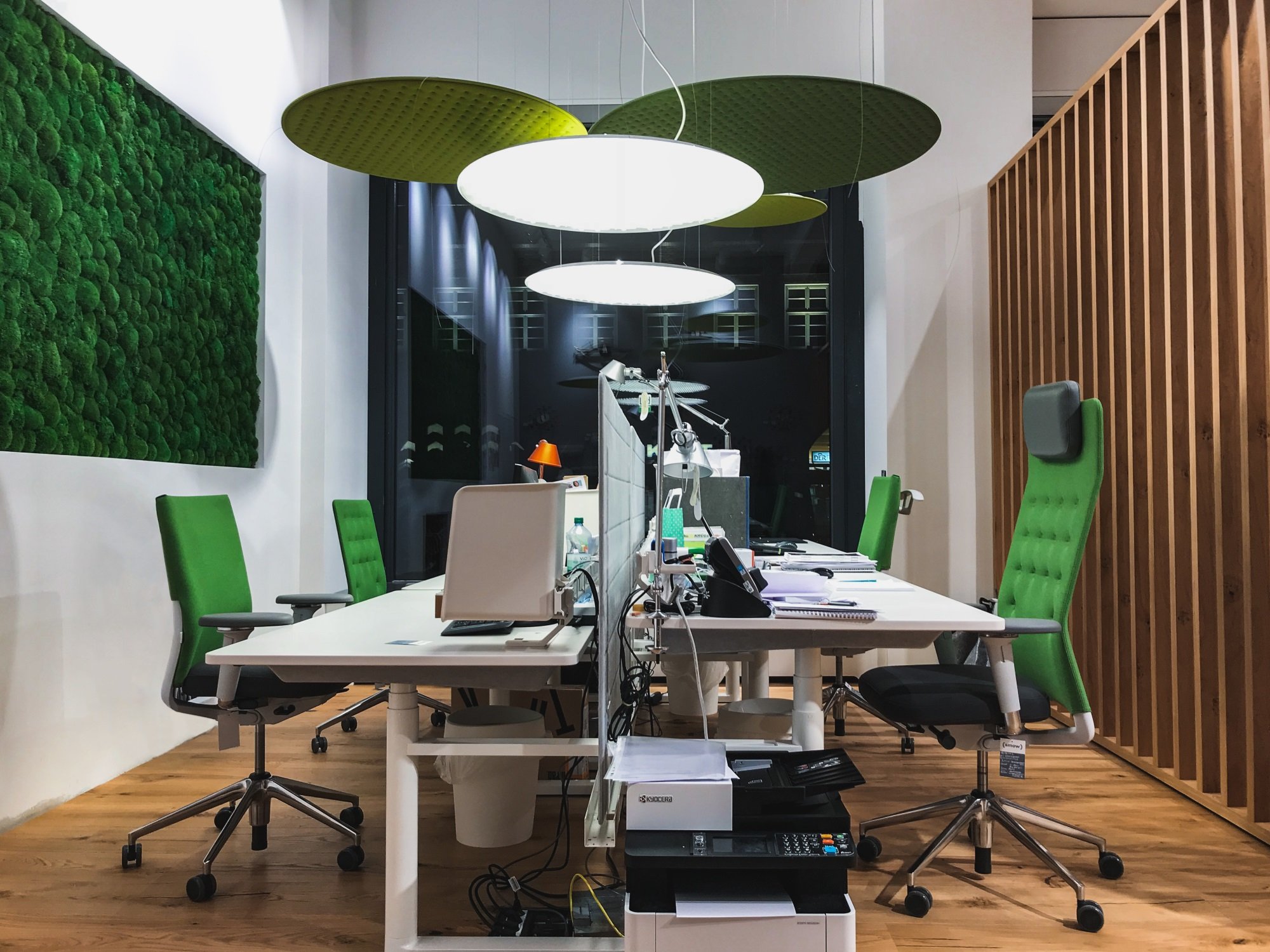 Nimbus desk lamps in an open-plan office (Photo © Frank Ockert)