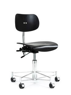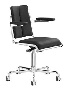 Among the design classics among office swivel chairs the luxurious Eames Aluminium Chairs by Vitra with their characteristic symbiosis of leather and metal are particularly popular, and the collection includes various swivel chairs, such as the Vitra EA 117. Thanks to different backrest heights and different upholstery the Aluminium Chairs can be used as office chairs for executives, conference chairs or office chairs. A special feature among office swivel chairs, and at the same time a classic of Danish design, is the Series 7 swivel chair by Fritz Hansen with its characteristic seat shell made of moulded plywood and the swivel frame made of chrome-plated steel. Thonet, on the other hand, has transformed one of the most famous design classics of modernism, the S 64 by Marcel Breuer, into an elegant office swivel chair with the S 64 VDR Atelier.