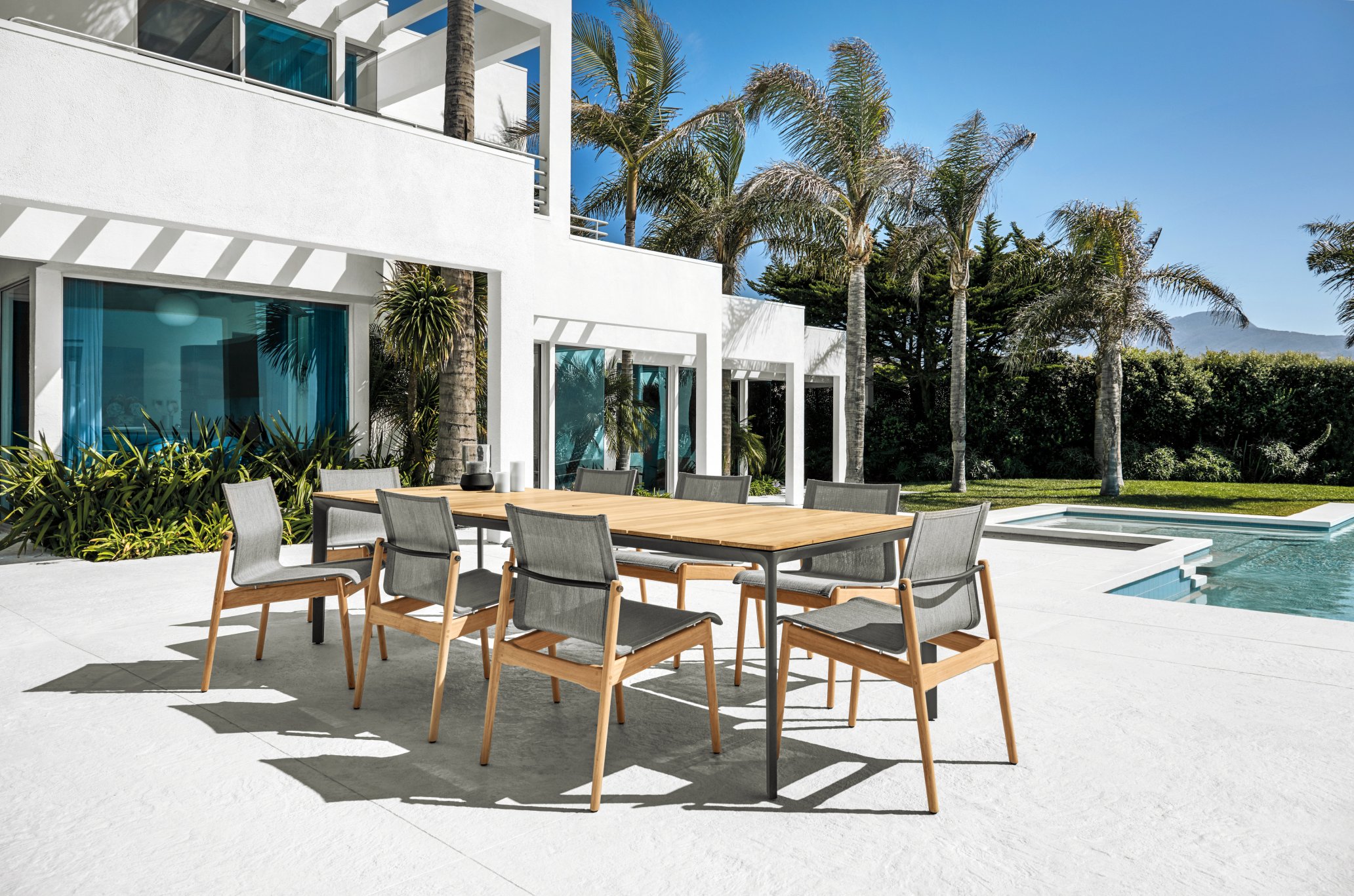 A harmonious ensemble for the dining area: the luxurious Sway Teak chairs with matching table from Gloster