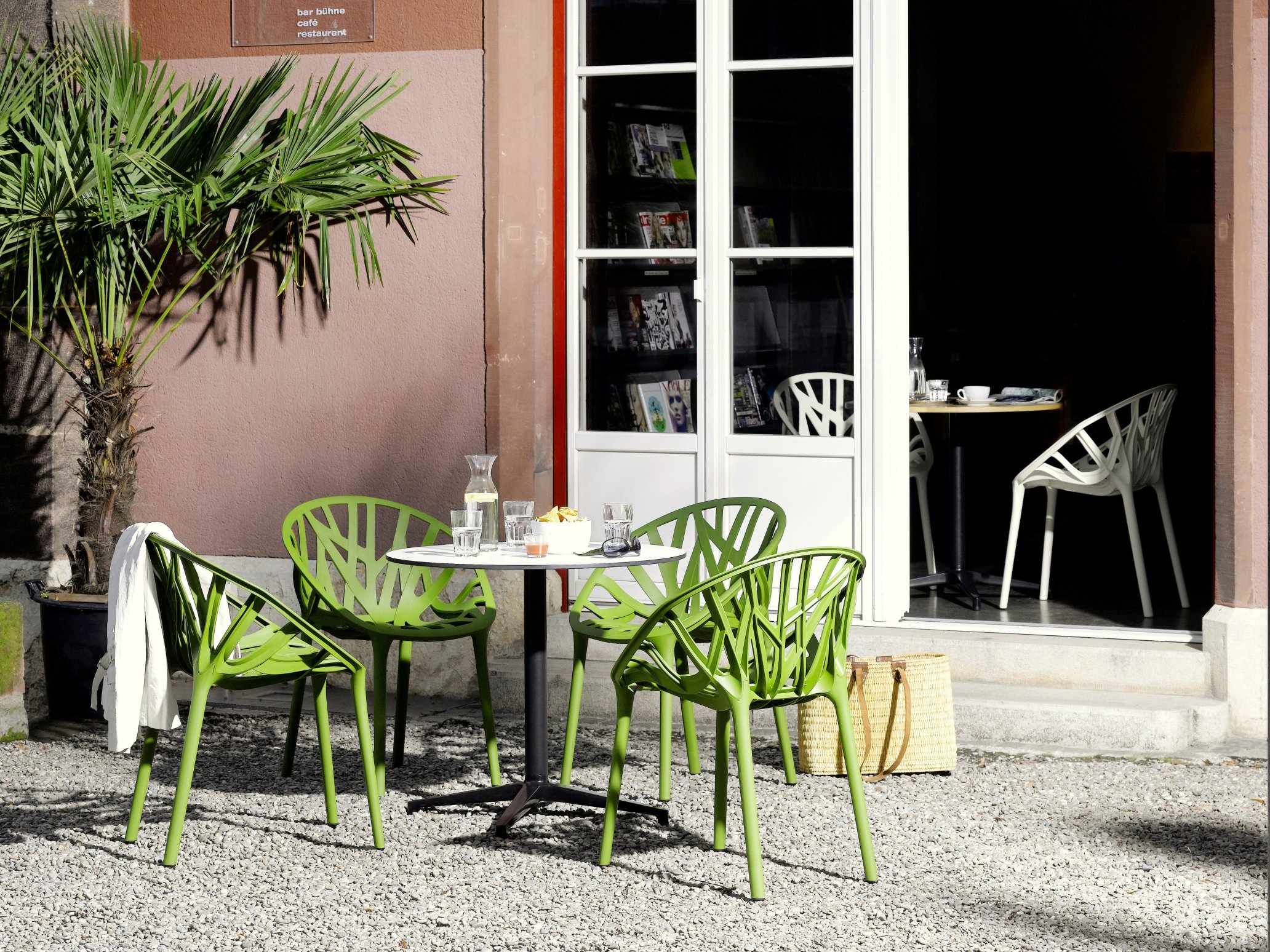 Bistro area with Bistro Table Outdoor and Tip Ton chairs, both through Vitra