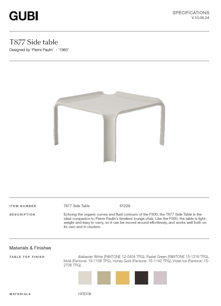 The T877 side table from Gubi picks up on the organic curves and flowing contours of the F300 armchair and acts as its ideal companion. Due to the light weight of its construction, the side table can be moved effortlessly and arranged both as a solitaire and within a group. The harmonious shape of Pierre Paulin's design emphasises the timeless aesthetics of modern home design.