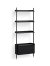 | Material | Shelves: sheet steel, black powder-coated Suspension rods: steel, chrome-plated Coat rail: extruded aluminium, with die-cast aluminium knobs Wire Basket: Steel rod and wire, black powder coated Cupboard: sheet steel, black powder-coated with aluminium door with magnetic closure Connectors: aluminium Supporting columns: Aluminium, black anodized with a satin finish and plastic end cap/gliders |