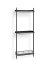 | Material | Shelves: sheet steel, black powder-coated Suspension rods: steel, chrome-plated Coat rail: extruded aluminium, with die-cast aluminium knobs Wire Basket: Steel rod and wire, black powder coated Cupboard: sheet steel, black powder-coated with aluminium door with magnetic closure Connectors: aluminium Supporting columns: Aluminium, black anodized with a satin finish and plastic end cap/gliders |