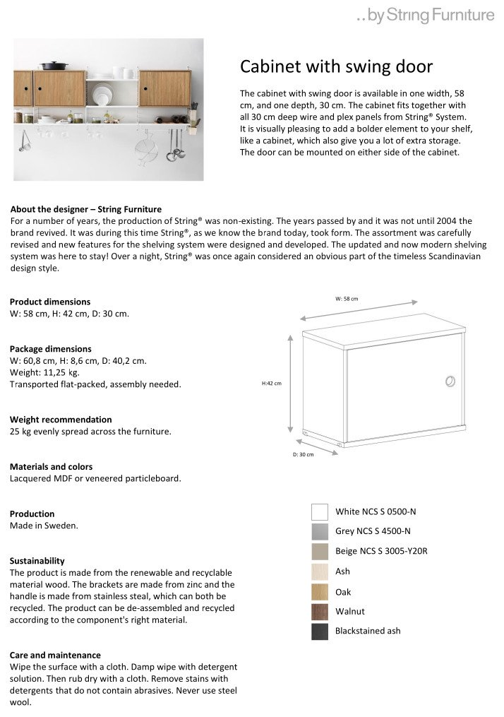 | Product type | Cabinet with swing door for the String shelving system |