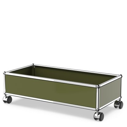 USM Haller box with castors, Olive green RAL 6003, Soft castors for hard floor surfaces