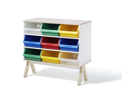 With the Famille Garage series, a collection which also includes the Famille Garage changing table/dresser (large), the German furniture manufacturer Richard Lampert has created designs characterised by their modularity and versatility. As with the Eiermann table frame and top which can be effortlessly dissembled, transported and exchanged so to is for the Famille Garage changing table and dresser flexibility an integral part of the philosophy. Designed by Alexander Seifried, the Famille Garage changing table and dresser can be extended with colourful plastic boxes and when the changing table is no longer required it can be transformed with the aid of a separately available base into a child's desk.