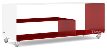 Sideboard R 111, Bicoloured, Pure white (RAL 9010) - Ruby red (RAL 3003), Industrial castors