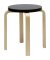Stool E60, Seat lacquered black, Legs birch clear varnished