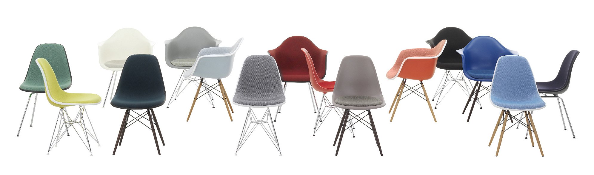 The 1940s and 1950s were a time of upheaval in the US and Europe. Needs changed, consumer societies emerged, housing demand increased, living space was therefore rare and so the furniture industry was faced with the challenge to develop multifunctional and flexible furniture. European functionalism with its representatives, such as Arne Jacobsen and Alvar Aalto, also found access to the American design furniture market, and to Charles and Ray Eames. With their innovative ideas of moulded Eames Chairs with inter-changable bases, Charles and Ray Eames won 2nd place in 1948 at the MoMA's "Low Cost Furniture Design" contest. With military research from the end of the Second World War, Charles and Ray Eames further developed their designs: with fiberglass-reinforced polyester resin for their Eames Plastic Chair collection. The names of their plastic chairs all consist of abbreviations and are remnants of military-bureaucratic understanding from war days, when Charles and Ray Eames still maintained a company due to the high demand, which produced extremely successful moulded wood leg bracesfor the military. The Eames Arm and Side Chairs met the demand for Midcentury furniture, adaptable to be producible and affordable for the broader masses. The Eames multi-purpose chairs soon became an integral part of universities, restaurants, schools, offices and airports and eventually became one of the popular design classics in the late 1990s after a temporary halt in production.