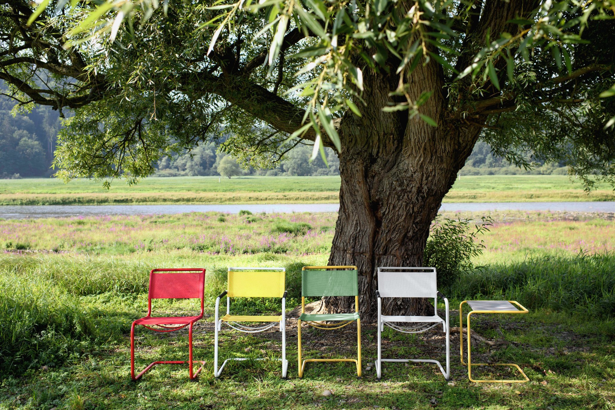 The suffixes also designate the respective variants: The F in the S 43 F stands for armchair (derived from the French fauteuil) and the M in the 214 M stands for plywood trough seat. The S 32 by Marcel Breuer, in the S 32 N version, features a seat composed of mesh rather than the classic cane mesh.