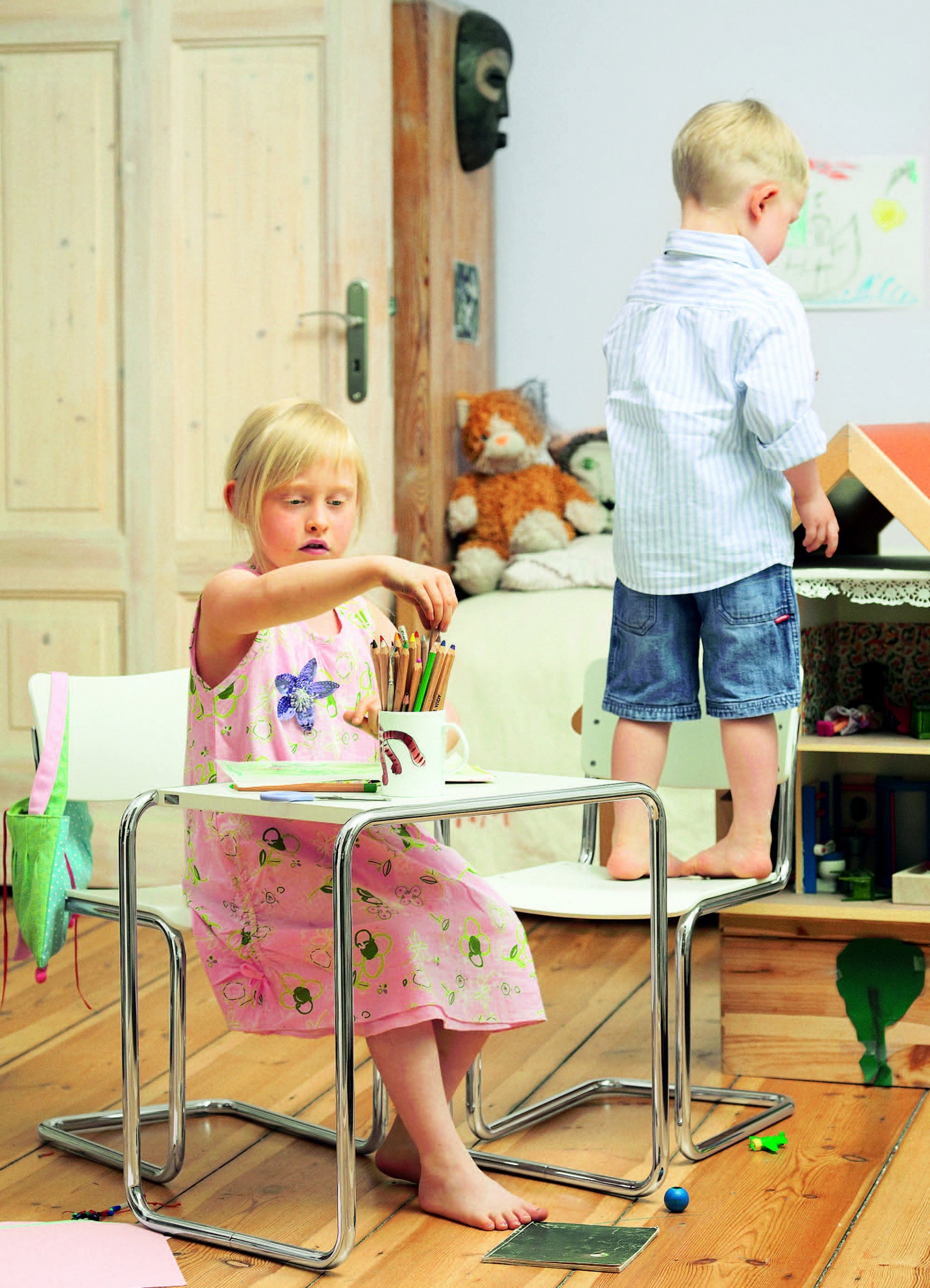In the 1930s Thonet was already the world's largest producer of tubular steel furniture, which was designed by some of the most important Modernist architects, including, Mart Stam, Marcel Breuer, Ludwig Mies van der Rohe or Le Corbusier. This furniture embodied the spirit of a new era characterized by rapidly advancing industrialization and innovative technologies. In addition to the tubular steel cantilever chairs, numerous tables also arose from this period - such as the B9 nesting tables or the iconic S 285 desk, both by Marcel Breuer.