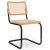 | Material | Frame: solid oak, ash or walnut wood, lacquered Seat/backrest: wickerwork with supporting fabric under the seat Base: tubular steel, chrome-plated or powder-coated in dark black Glides (optional): plastic, black |