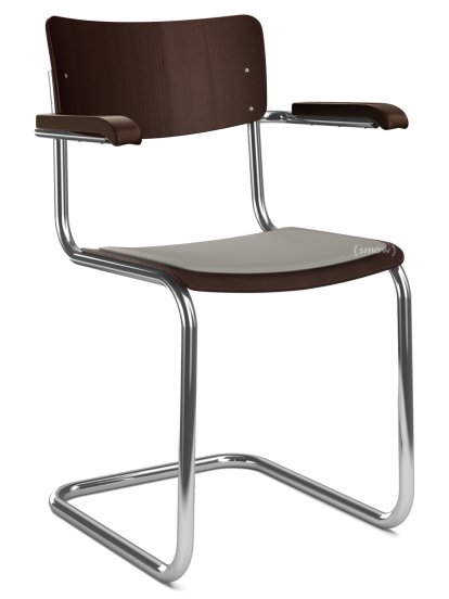S 43 F Classic Cantilever Chair Chrome-plated frame|Stained beech|Dark brown (TP 89)|Seat pad with upholstery light grey melange|No glides