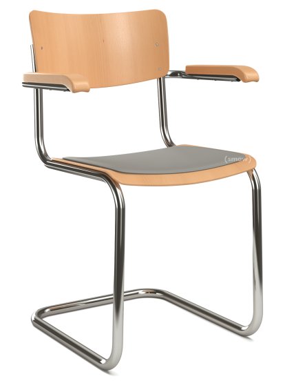 S 43 F Classic Cantilever Chair Chrome-plated frame|Stained beech|Natural beech|Seat pad with upholstery light grey melange|No glides