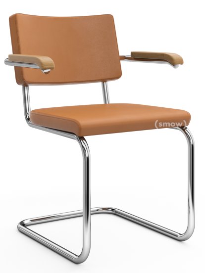 S 64 PV Pure Materials Cantilever Chair, Nappa Leather cognac, Oak, Chrome-plated, Black plastic glides with felt
