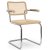 | Material | Frame/armrests: solid oak, ash or walnut wood, lacquered Seat/backrest: wickerwork with supporting fabric under the seat Base: tubular steel, chrome-plated or powder-coated in dark black Glides (optional): plastic, black |