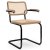 | Material | Frame/armrests: solid oak, ash or walnut wood, lacquered Seat/backrest: wickerwork with supporting fabric under the seat Base: tubular steel, chrome-plated or powder-coated in dark black Glides (optional): plastic, black |