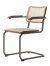 | Material | Base: Tubular steel, matt smoked chrome or powder-coated matt deep black Seat/backrest: wickerwork with supporting fabric Frame/armrests: solid oak or walnut, oiled Glides: POM glides black (allround, with Teflon) |
