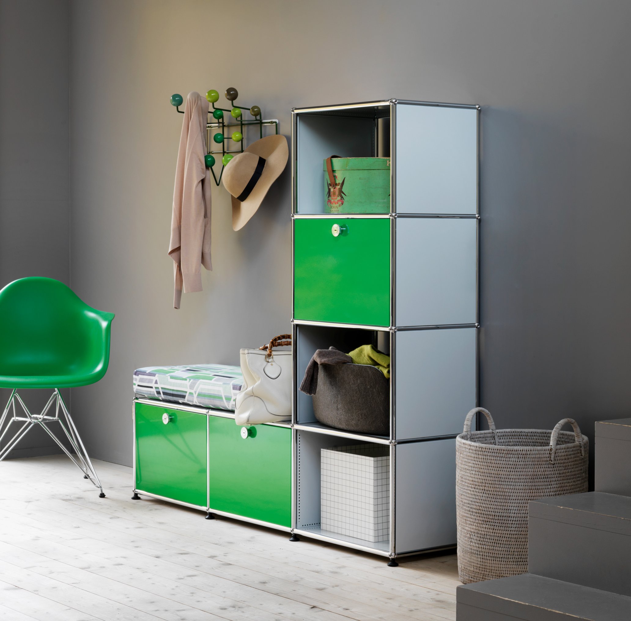 Although originally only developed for USM, the system was launched in the mid 1960s and today remains an incomparably flexible piece of furniture design which can be found globally in offices, homes and museums, including the Museum of Modern Art, MoMA, in New York.