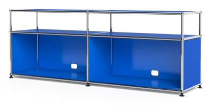 USM Haller Lowboard L with Extension, Customisable, Gentian blue RAL 5010, Open, With cable entry hole bottom centre